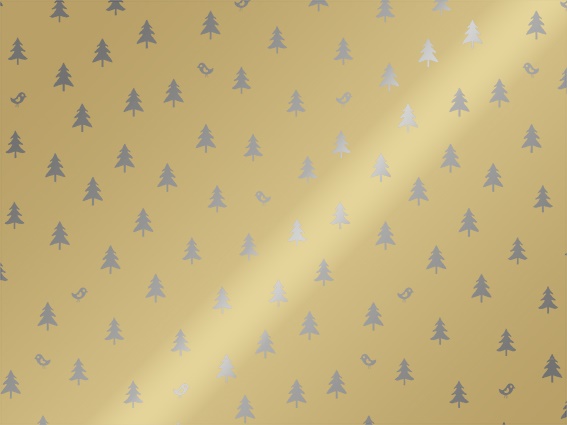 Rol kerstpapier metallic 30 cm 100 mtr kerstboom op goud (ucl)