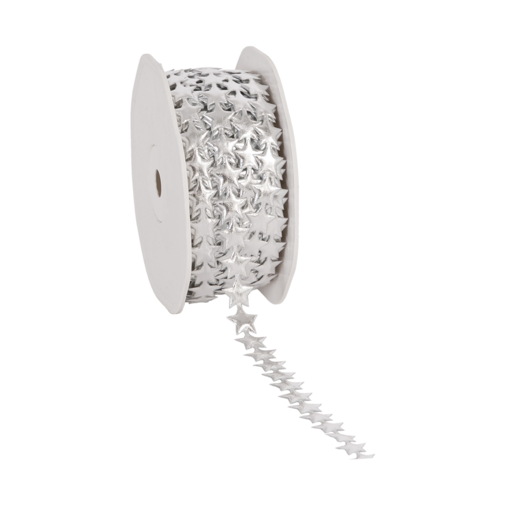 Rol koord lint 12 mm 15 mtr Lurex Sterren zilver (uc)
