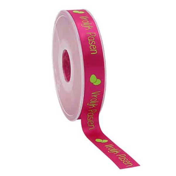 Rol satijnlint 15 mm 25 mtr Vrolijk Pasen fuchsia (ucl)