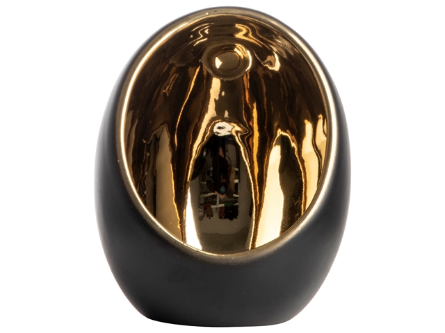 Waxinelichthouder Ei 11x12x14,5 cm zwart/goud (uc)