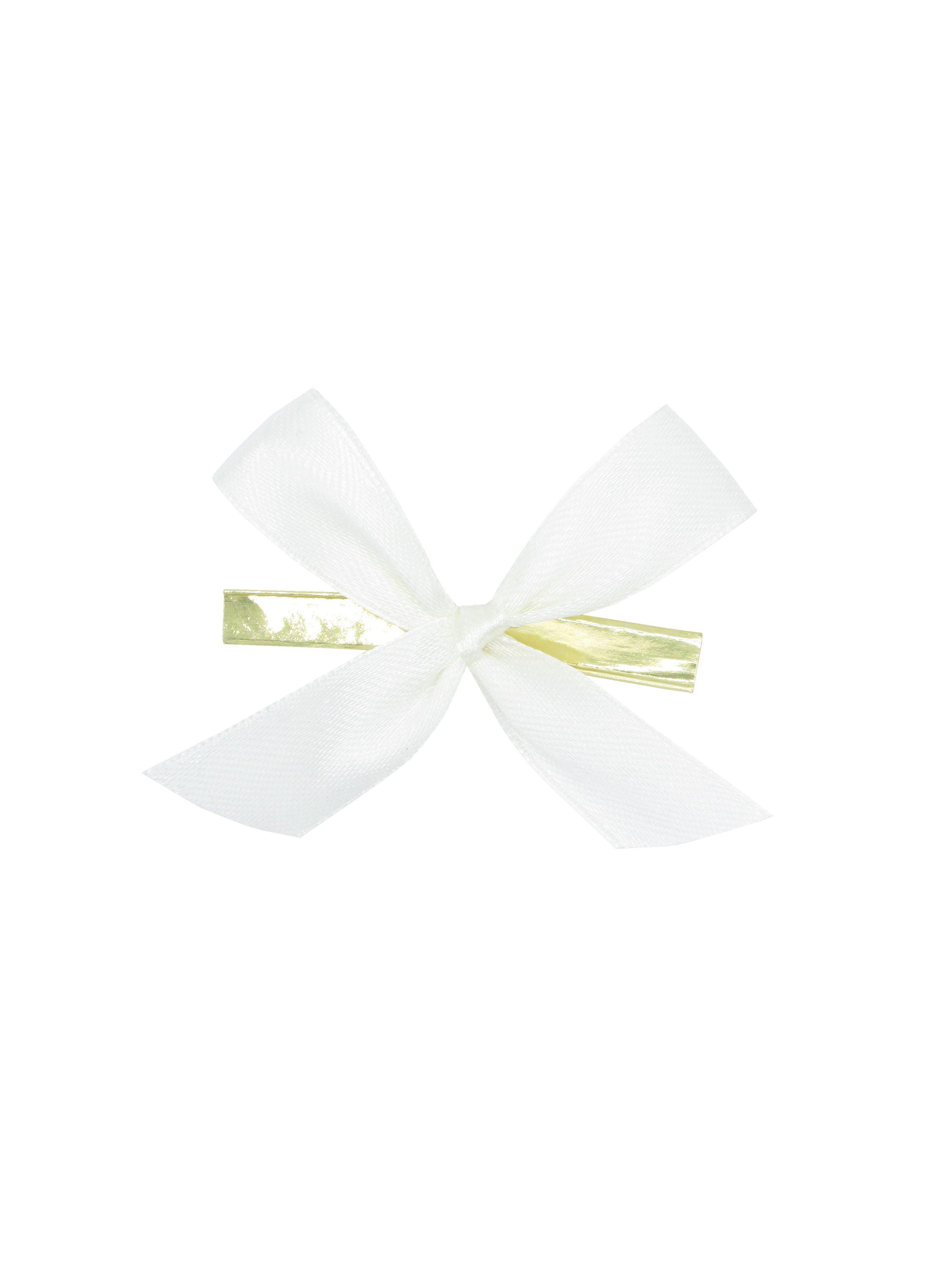 De strik is gemaakt van satijnlint 10 mm breed en heeft goudkleurige sluitclip van 6 cm.