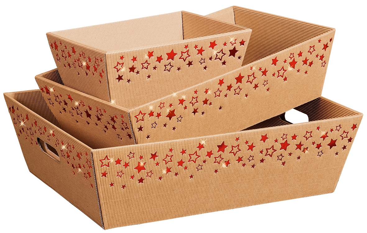 Ds à 25 kartonnen bak 33,6x19,6x11 cm metallic rode sterren (uc)