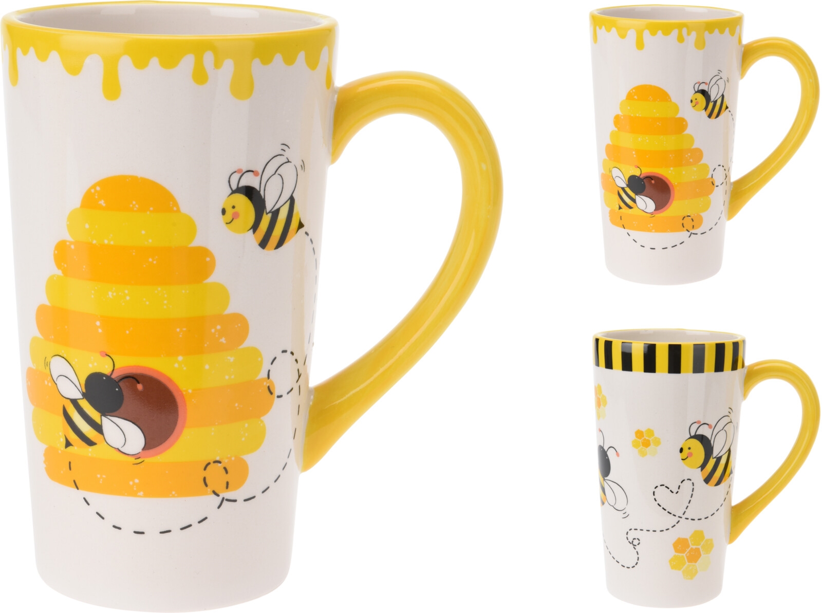 Mok keramiek 400 ml wit/geel met bijen assorti (uc)