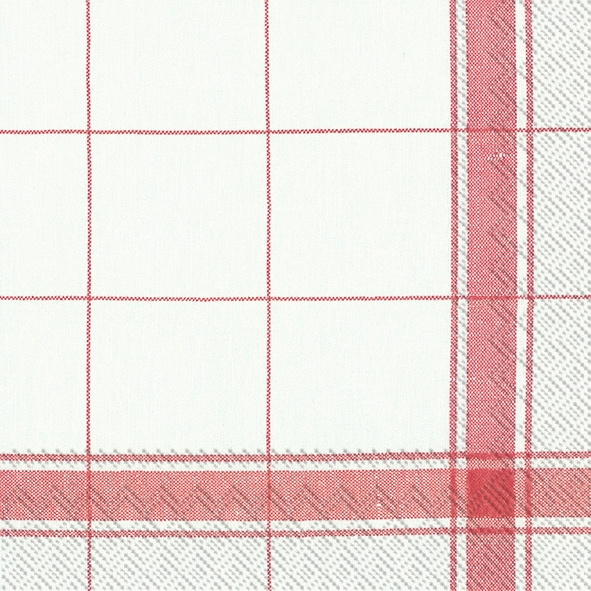 Pak à 20 servetten 33x33 cm 3 laags Theedoek rood/wit (uc)