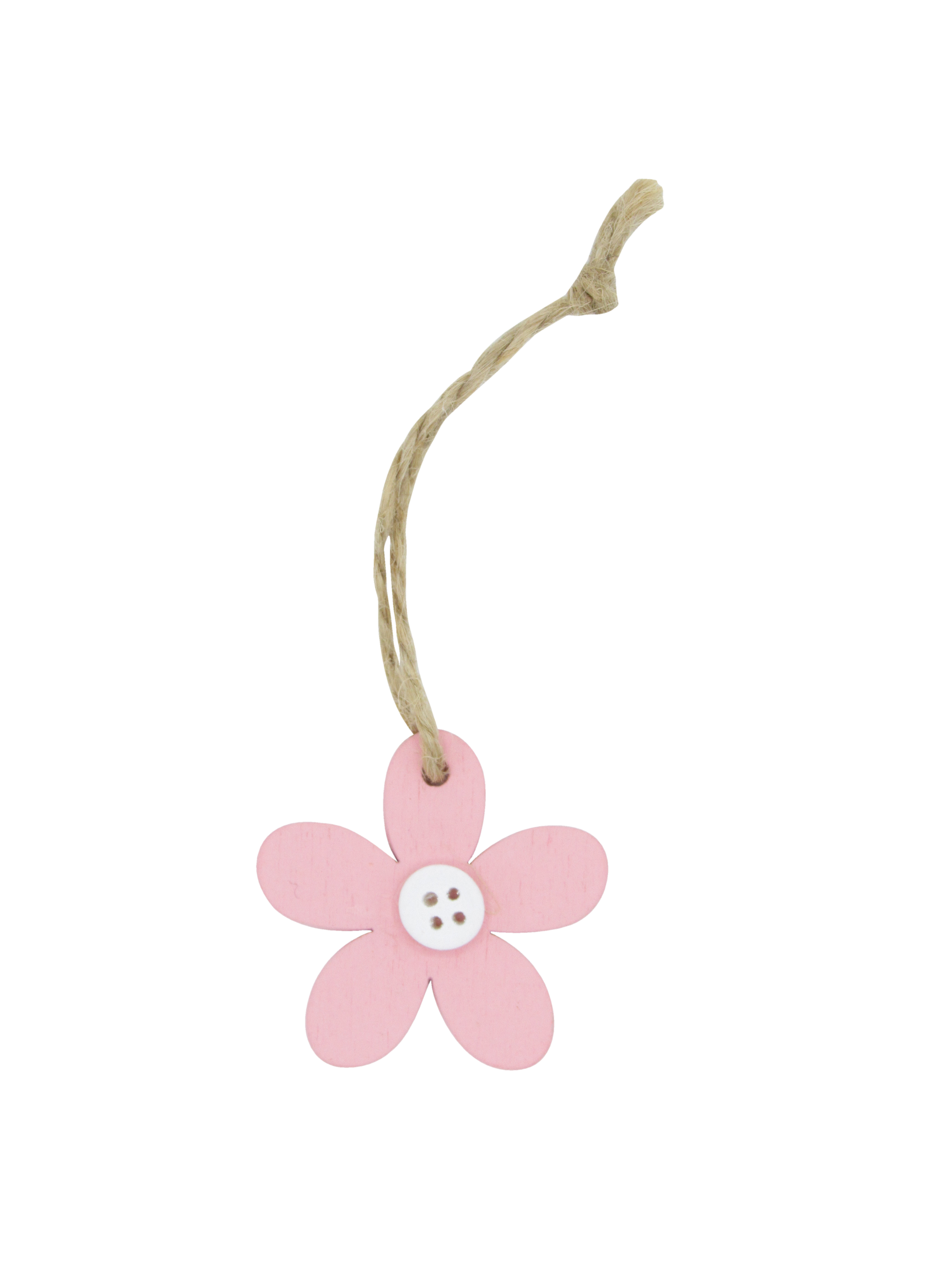 Pak à 24 houten hanger 5x5 cm bloem hout roze (uc)