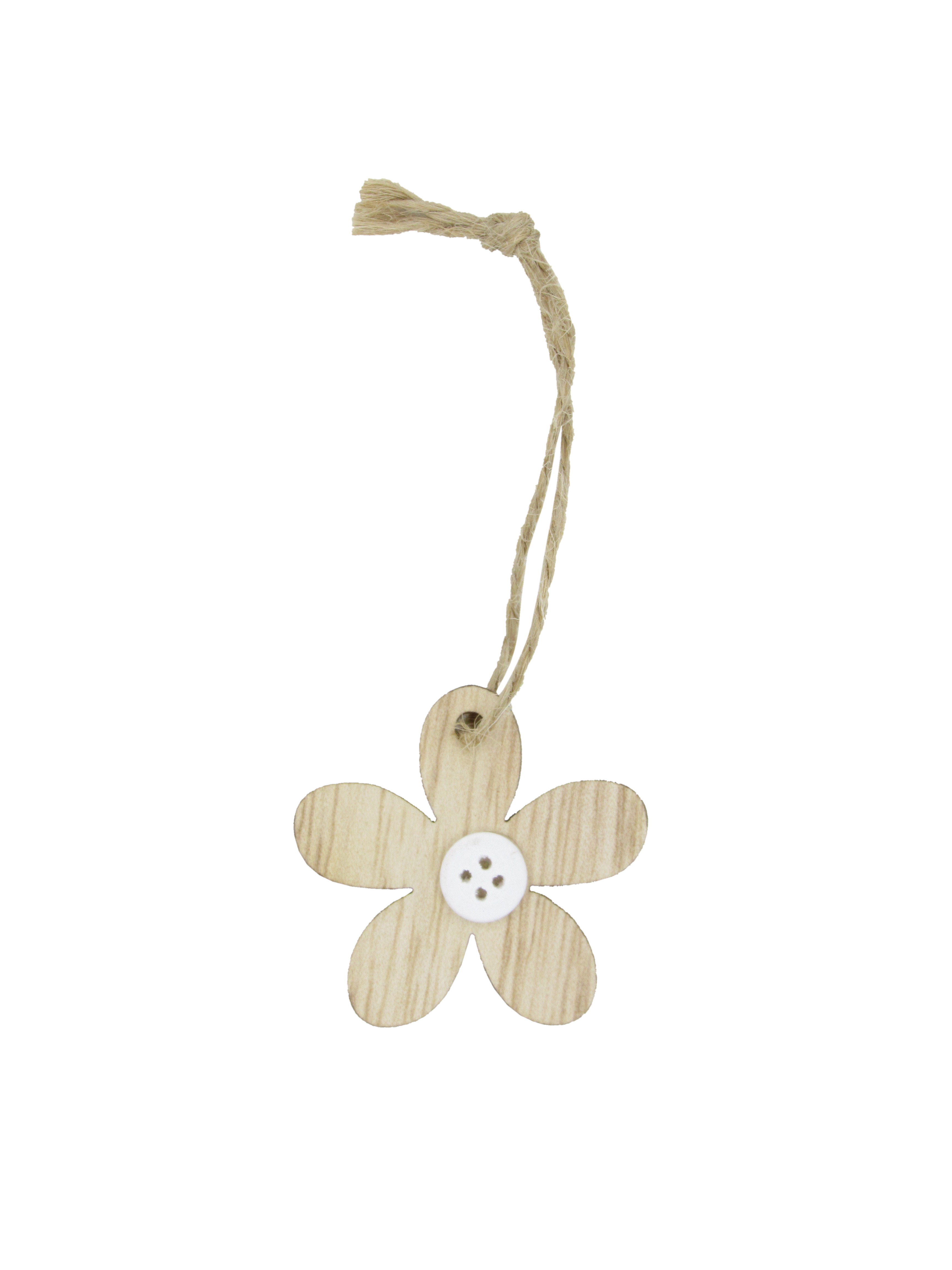 Pak à 24 houten hanger 5x5 cm bloem naturel (ucl)