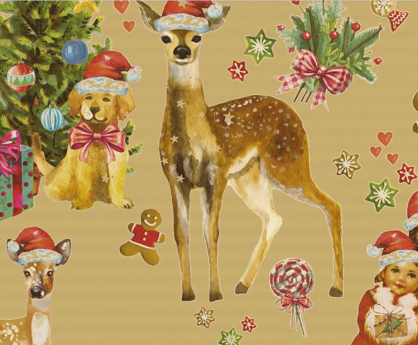 Rol kerstpapier 50 cm 250 mtr kraft rendier