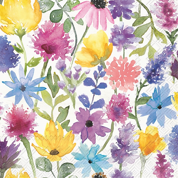 Pak à 20 servetten 33x33 cm 3 laags creme Zomerbloemen (uc)