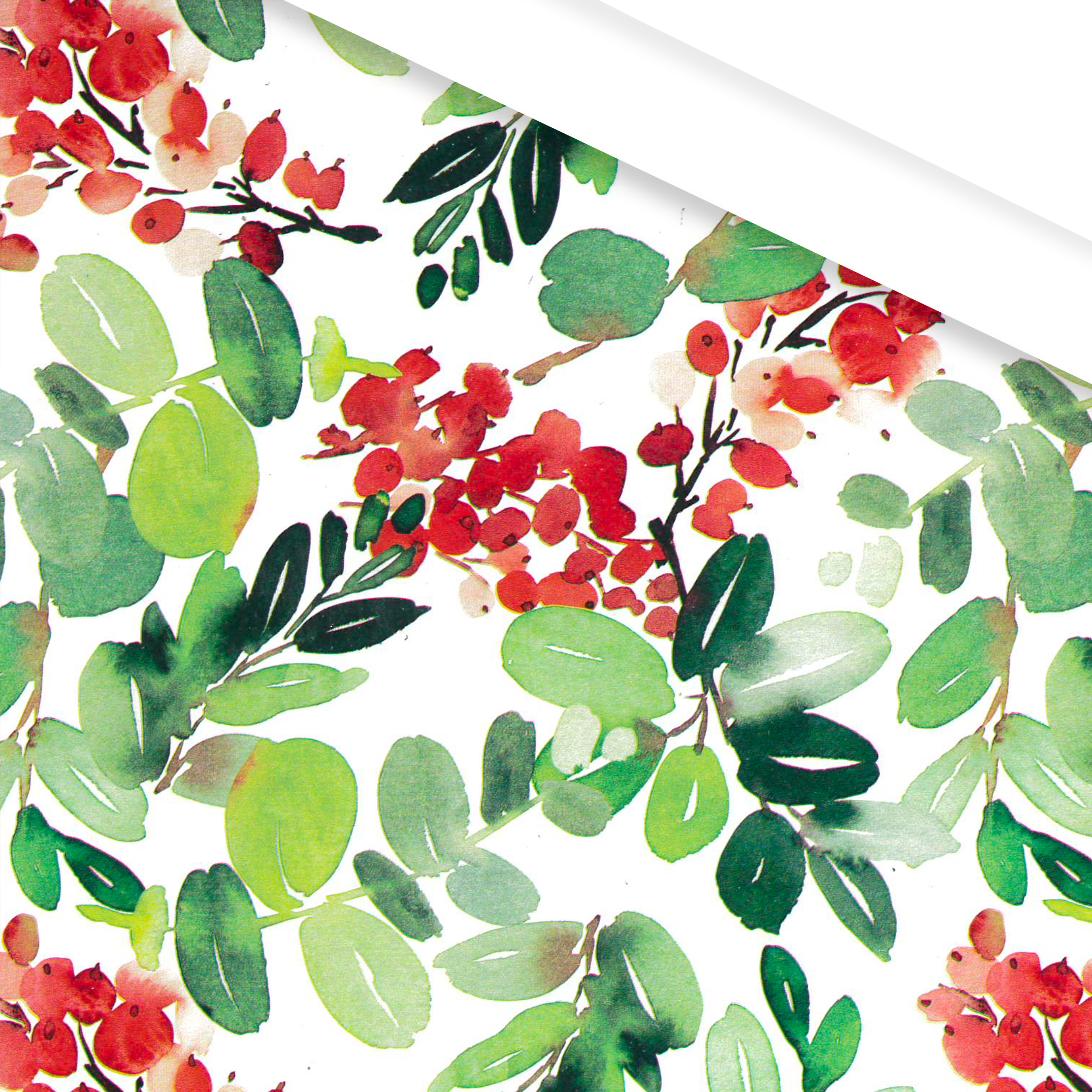 Rol kerstpapier 30 cm 200 mtr kersttakken en rode besjes (uc)