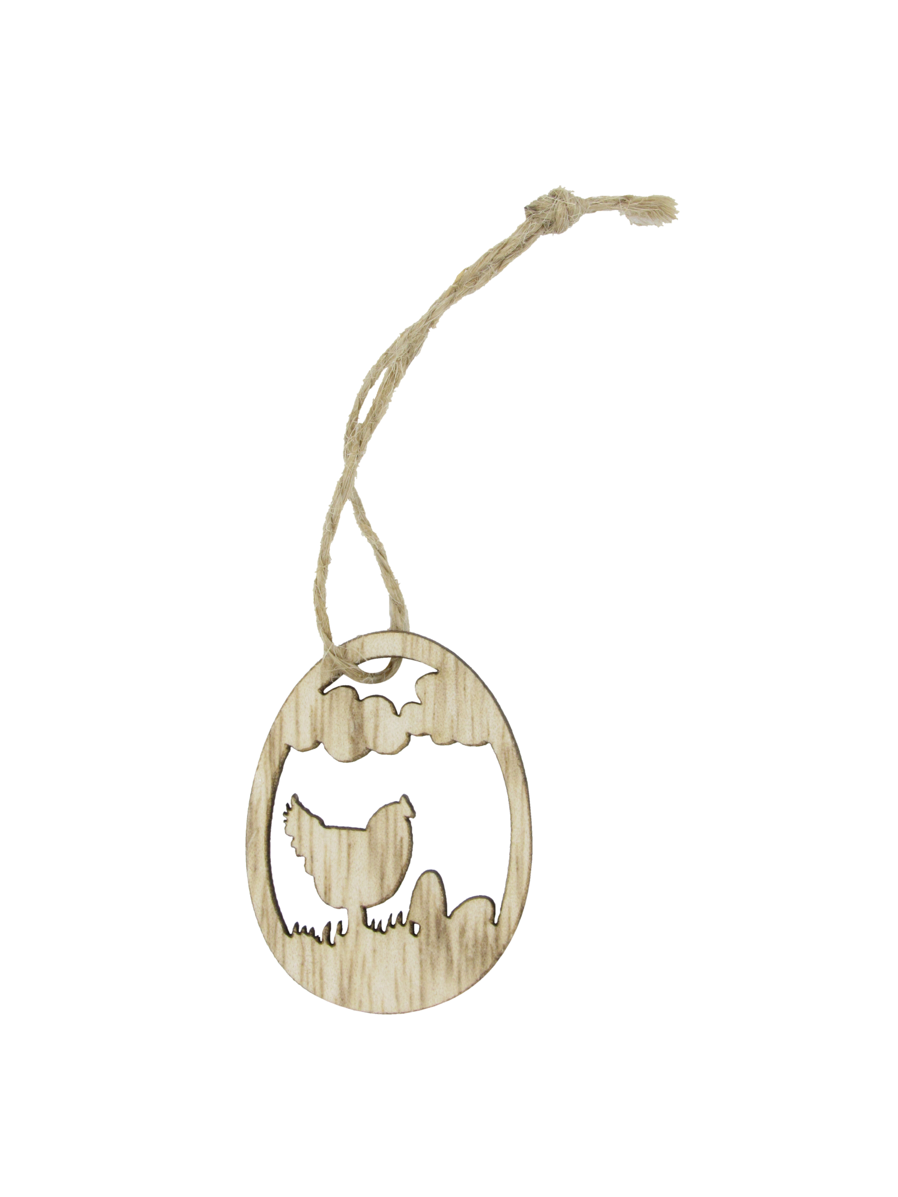 Pak à 24 houten hanger 4,5x3,5 cm ei met kip