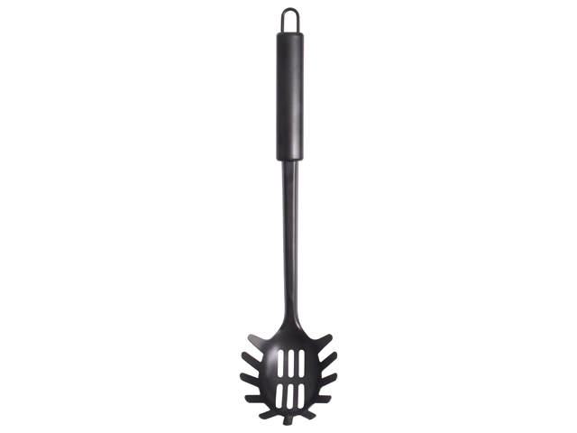 Deze handige zwarte lepel gebruik je voor het opscheppen van je macaroni, spaghetti, bami en andere soorten pasta. De gaten in de lepel zorgen ervoor dat het kookwater goed wordt afgevoerd. Geeft een stoere en tijdloze look in je keuken! De pastalepel is gemaakt van metaal in een mat zwarte kleur. Afmeting: 32 x 7,5 x 6 cm