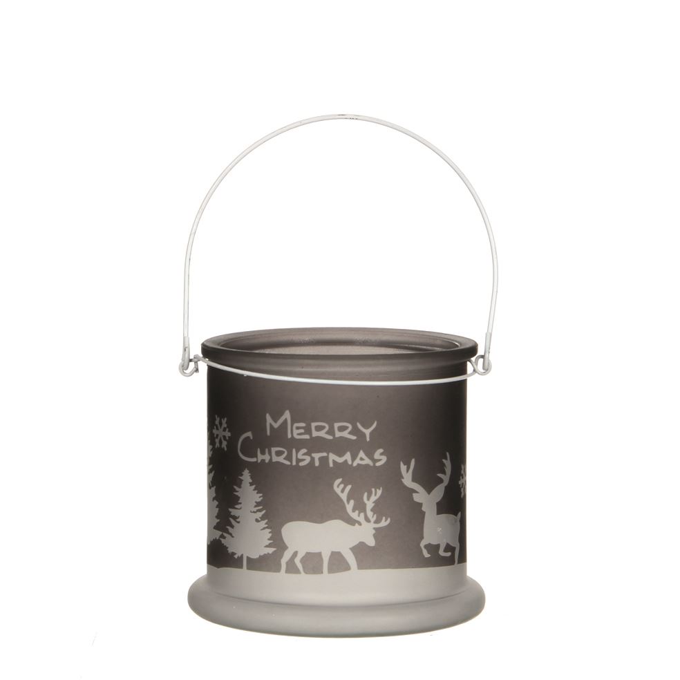 Windlicht glas, Merry christmas, 12x12 cm grijs (ucl)