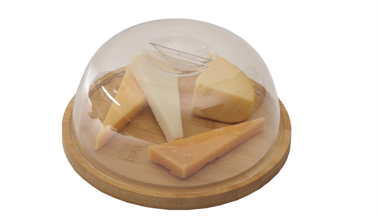 Bamboe kaasplank r18x8 cm met kunststof stolp (ucl)