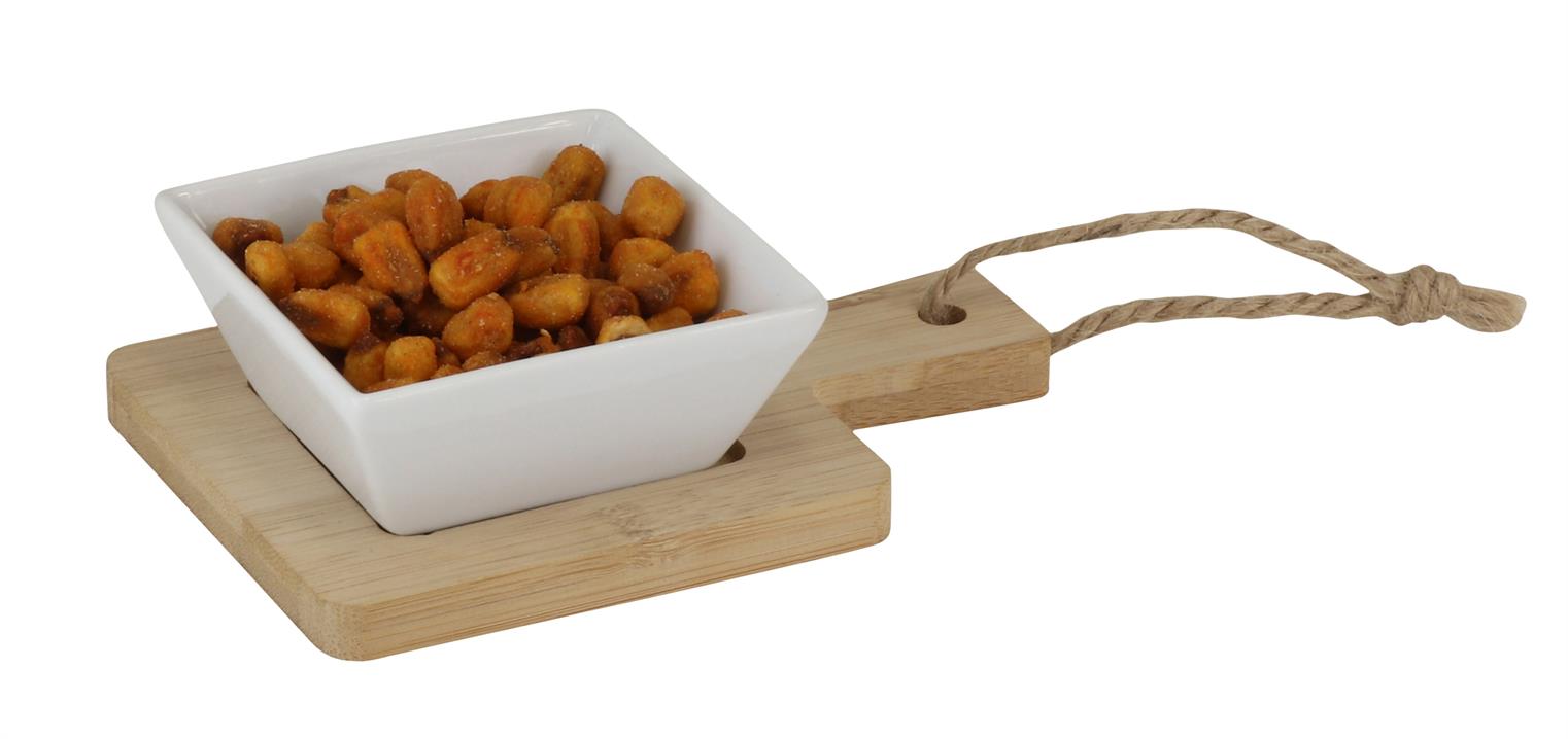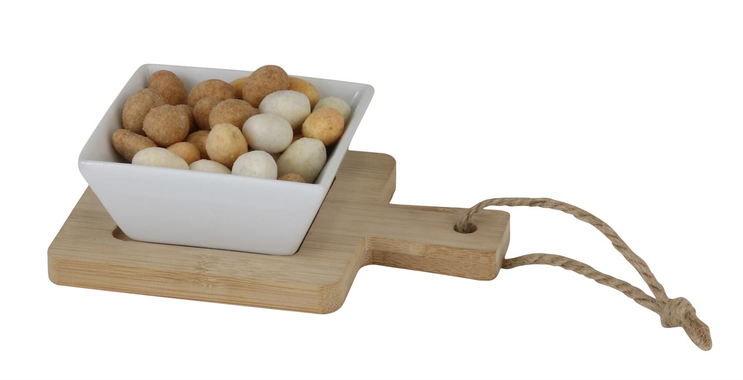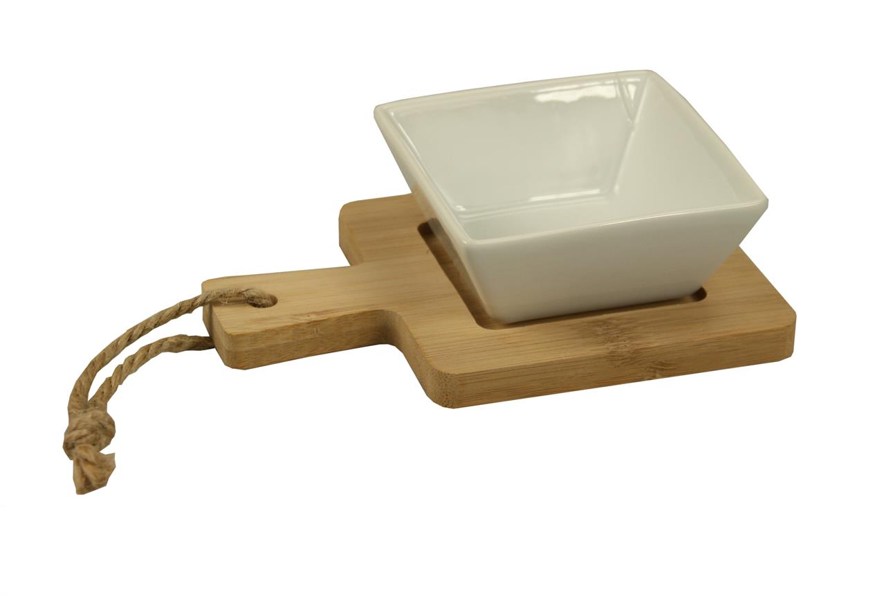 Bamboe plank 14x10x4,2 cm met vierkant bakje wit