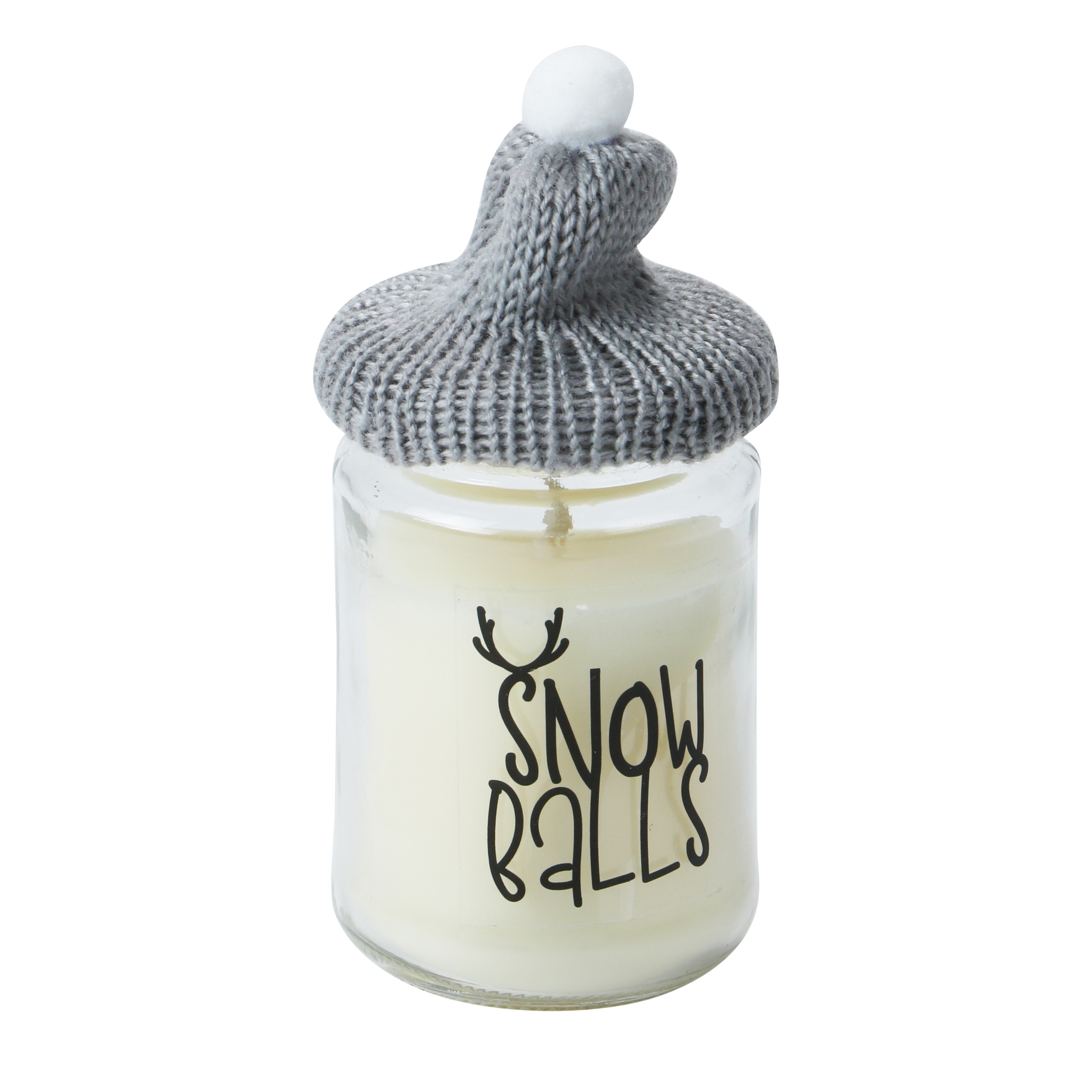 Geurkaars in glas 6,5x10,5 cm met muts + bolletje (uc)