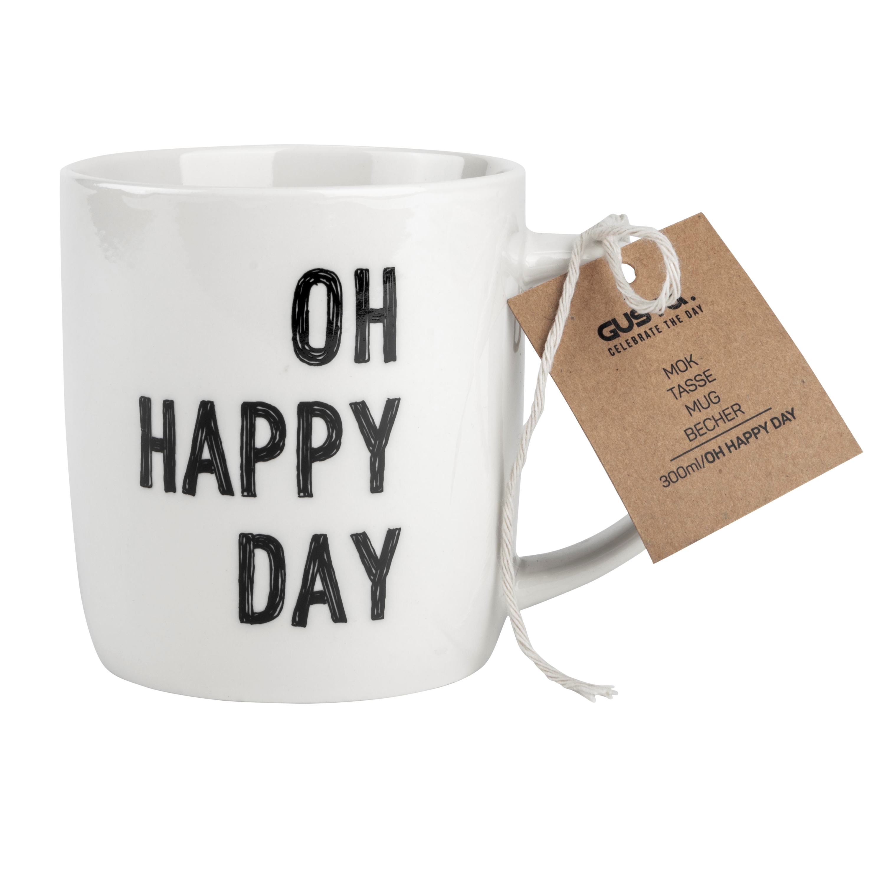 Met deze gezellige Gusta mok begint elke dag goed! Op de grote mok staat de tekst “Oh Happy Day” en hieruit drink jij jouw favoriete thee, koffie of cappuccino. Voorzien van een groot handvat dus fijn vastpakken.