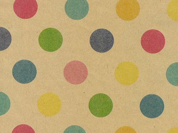 Rol kadopapier 50 cm 100 mtr kraft met gekleurde rondjes (ucl)