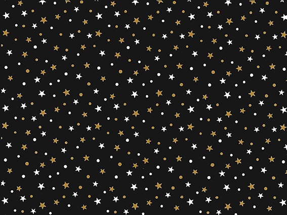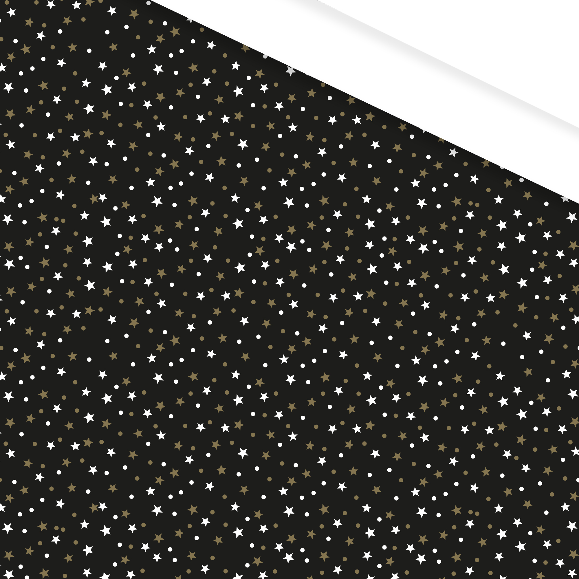 Rol kerstpapier 30 cm 100 mtr mini sterren zwart/goud/wit (uc)