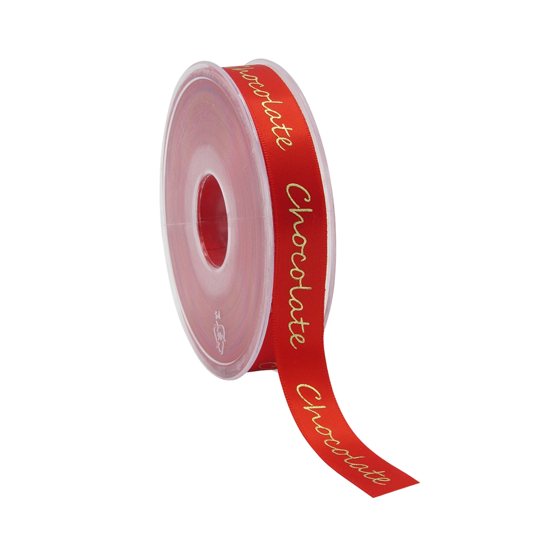 Rol satijnlint 15 mm 25 mtr rood met goud Chocolate (ucl)