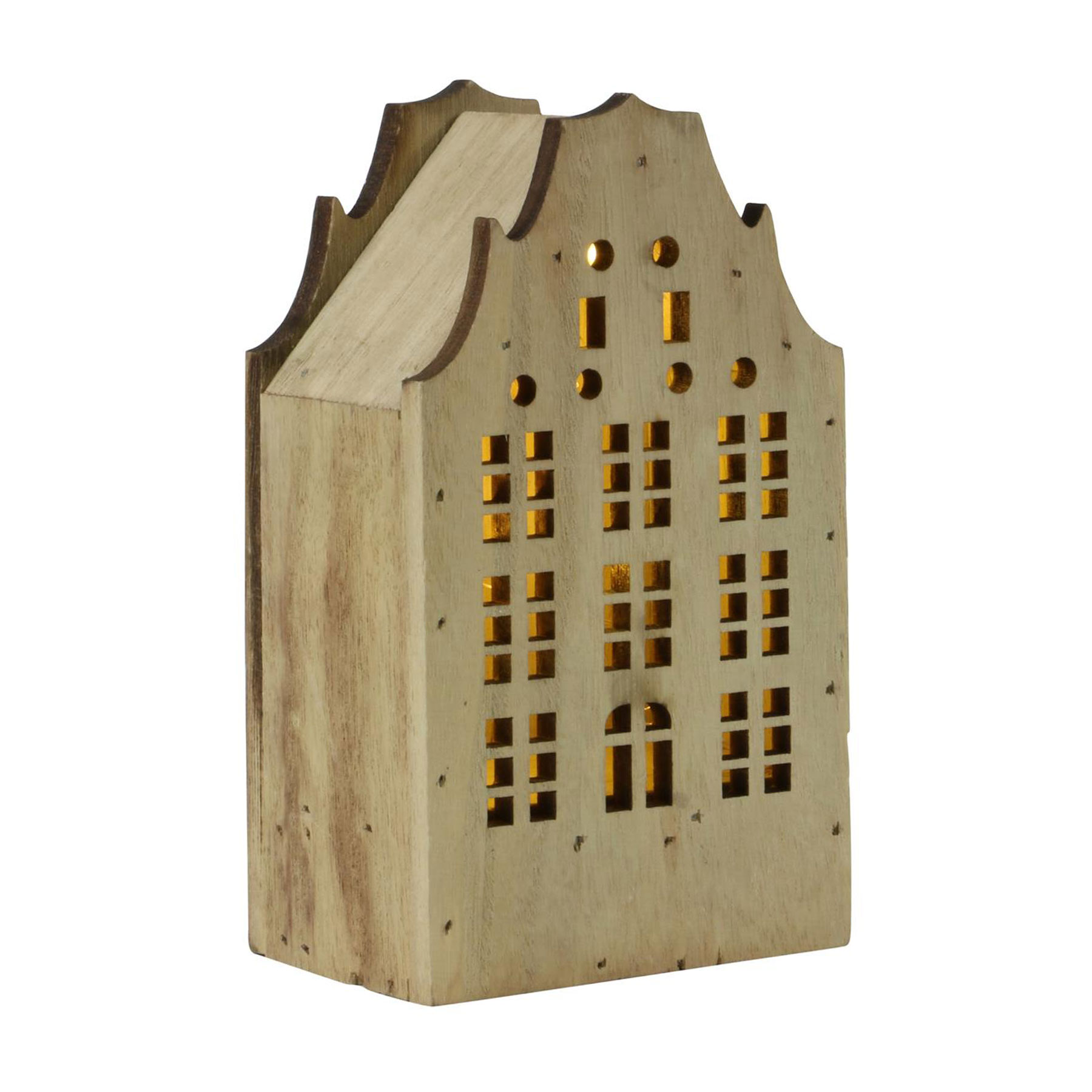 Houten huisje 10,5x7x18 cm met verlichting (uc)