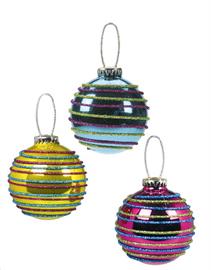 Kerstbal 6,5 cm gestreept, 3 kleuren assorti