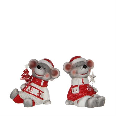 Kerstmuis zittend 7x7x10,5 cm assorti (uc)