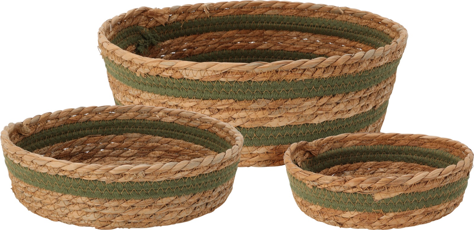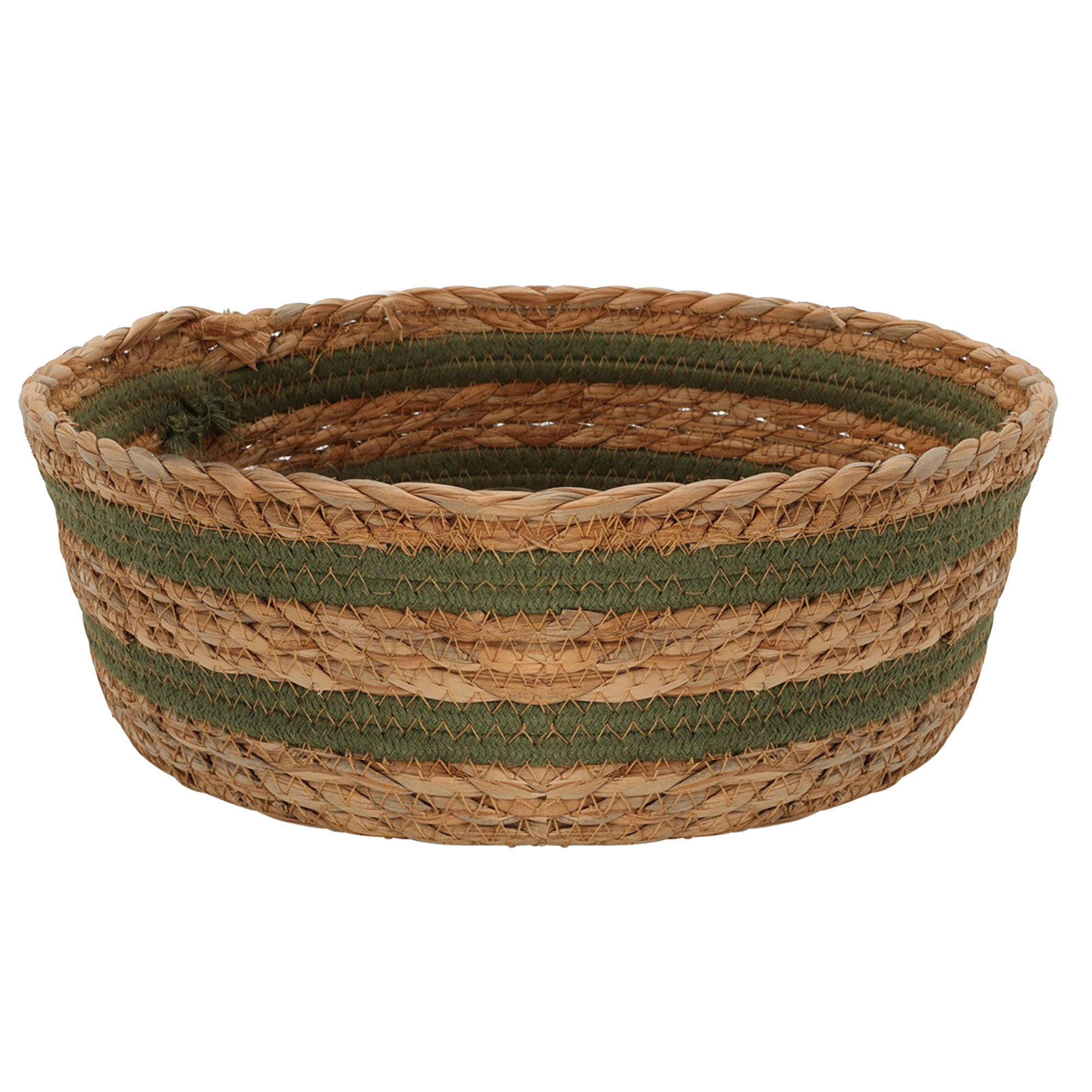 Mand rond 31x10,5 cm, riet met groene streep, groot (uc)