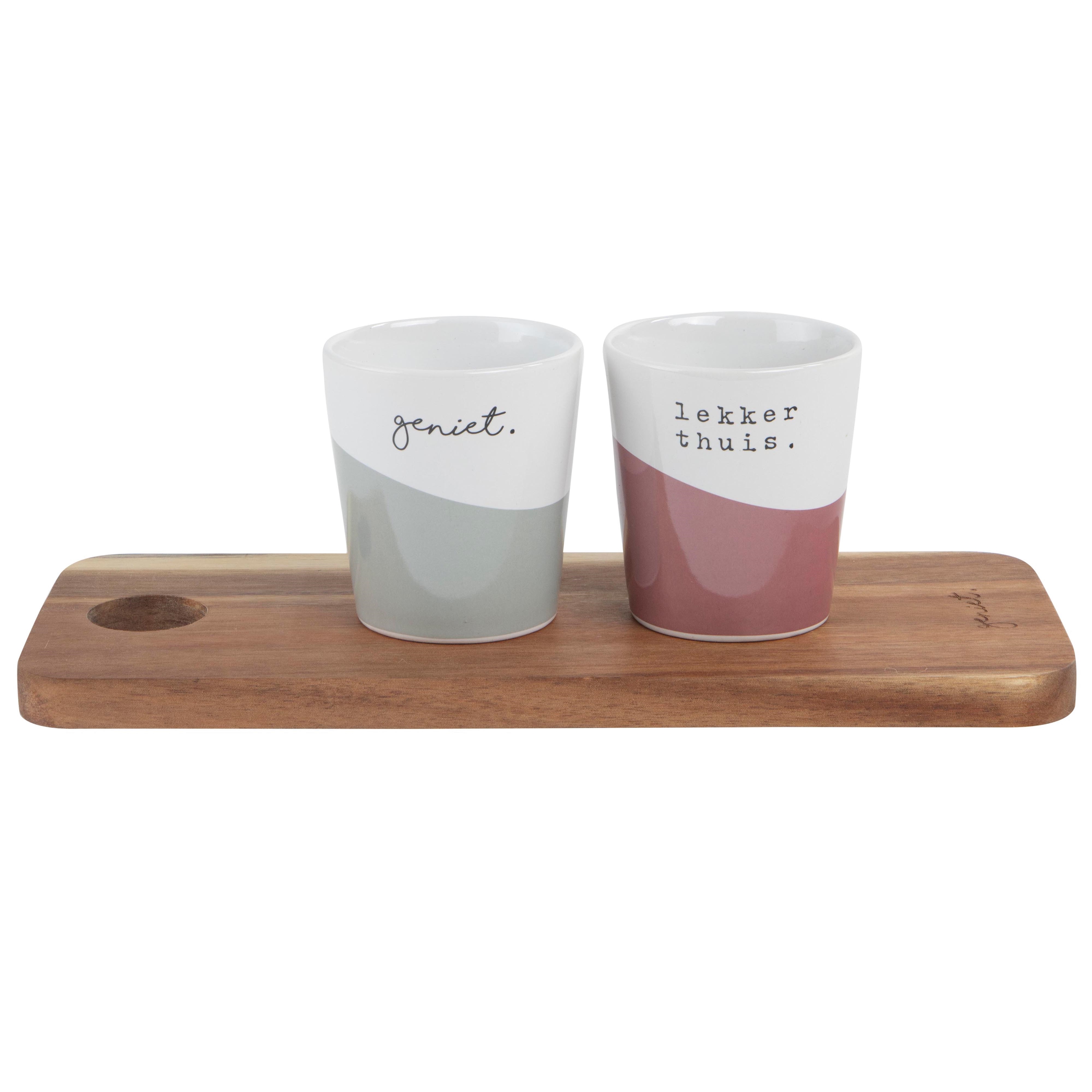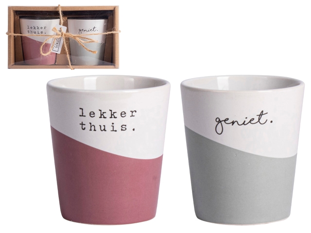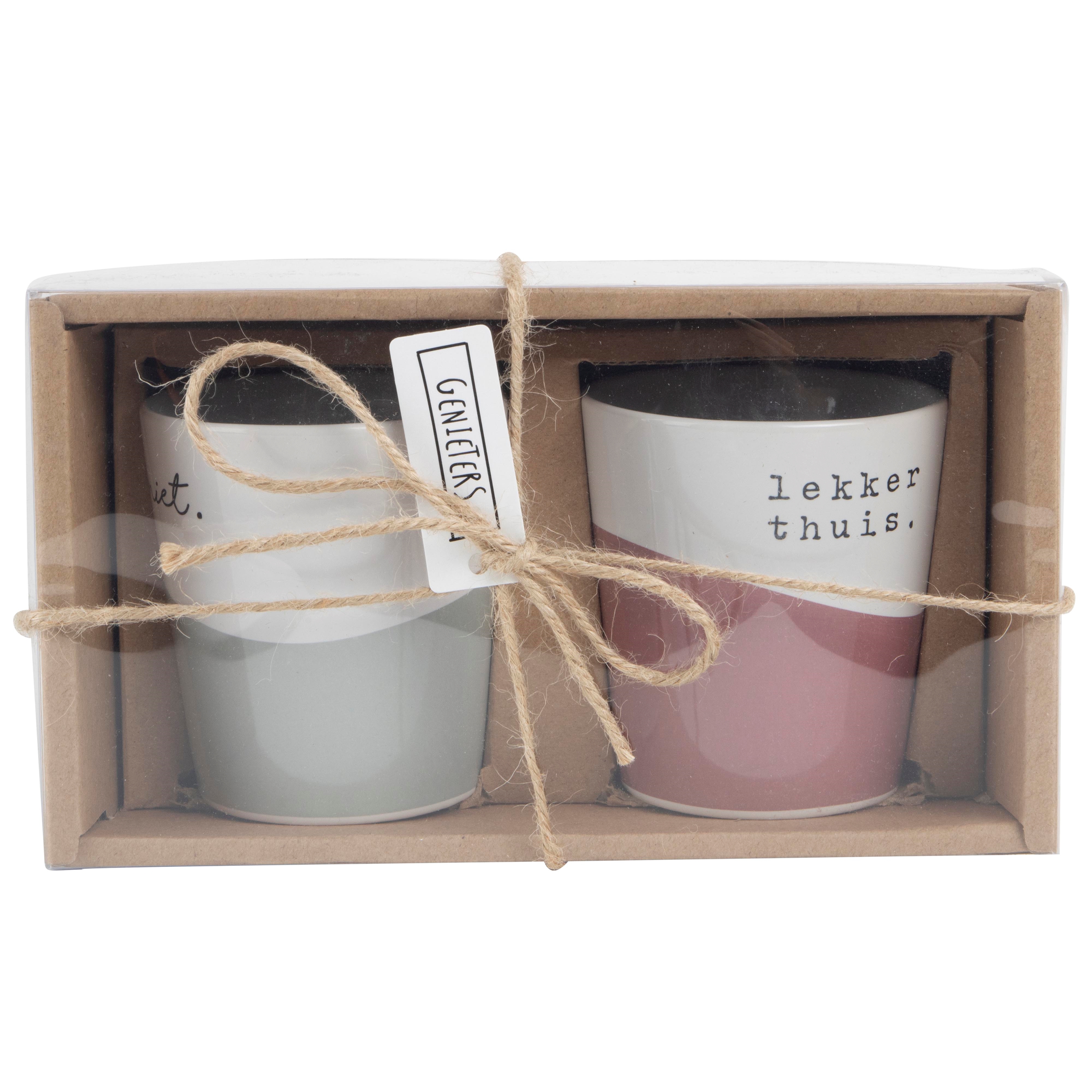 Set à 2 mok 7,5x8 cm Geniet en lekker thuis rose/grijs (ucl)