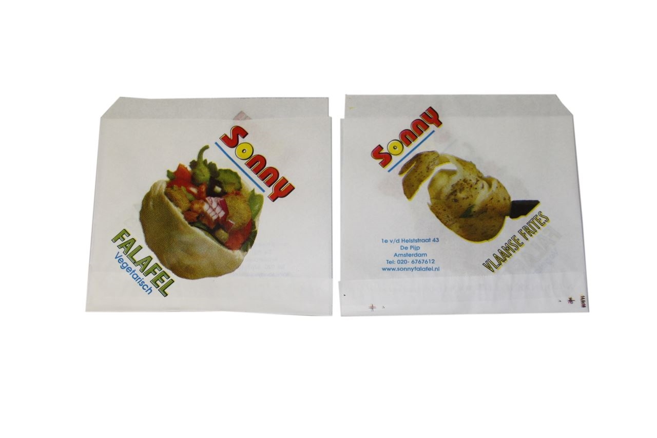 Wilt u ook een hamburgerzakje met eigen logo? Dit is al mogelijk vanaf 40.000 stuks (10 dozen).