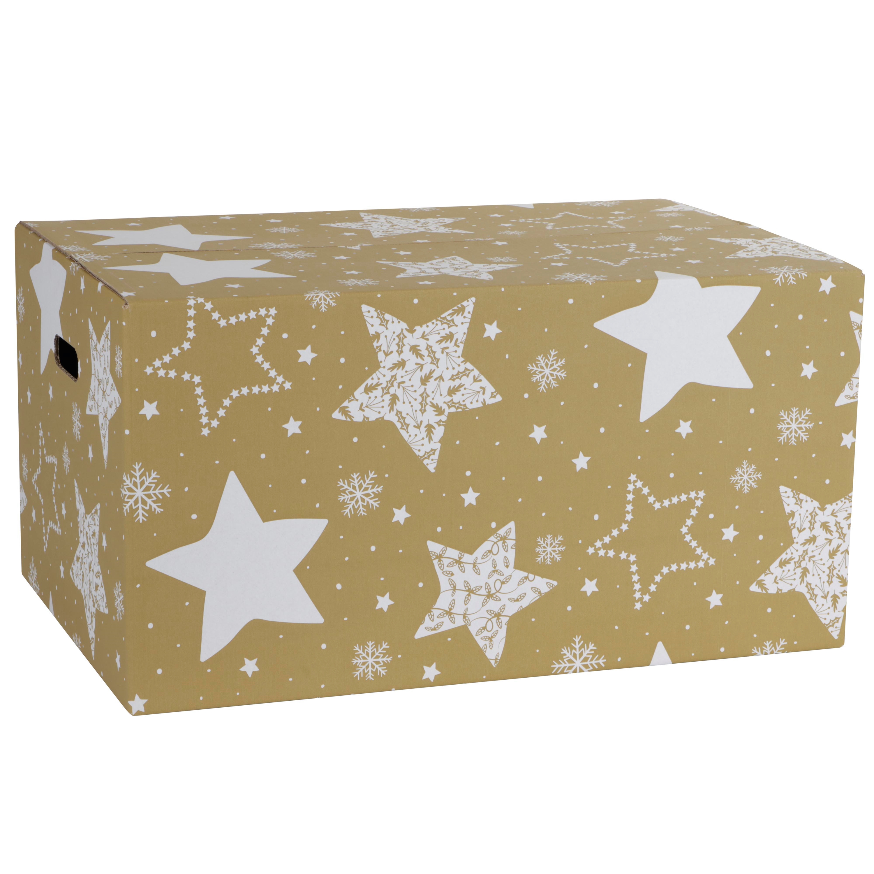Kerstdoos H300 Stars goud 59x39x30 cm met handgrepen (ucl)