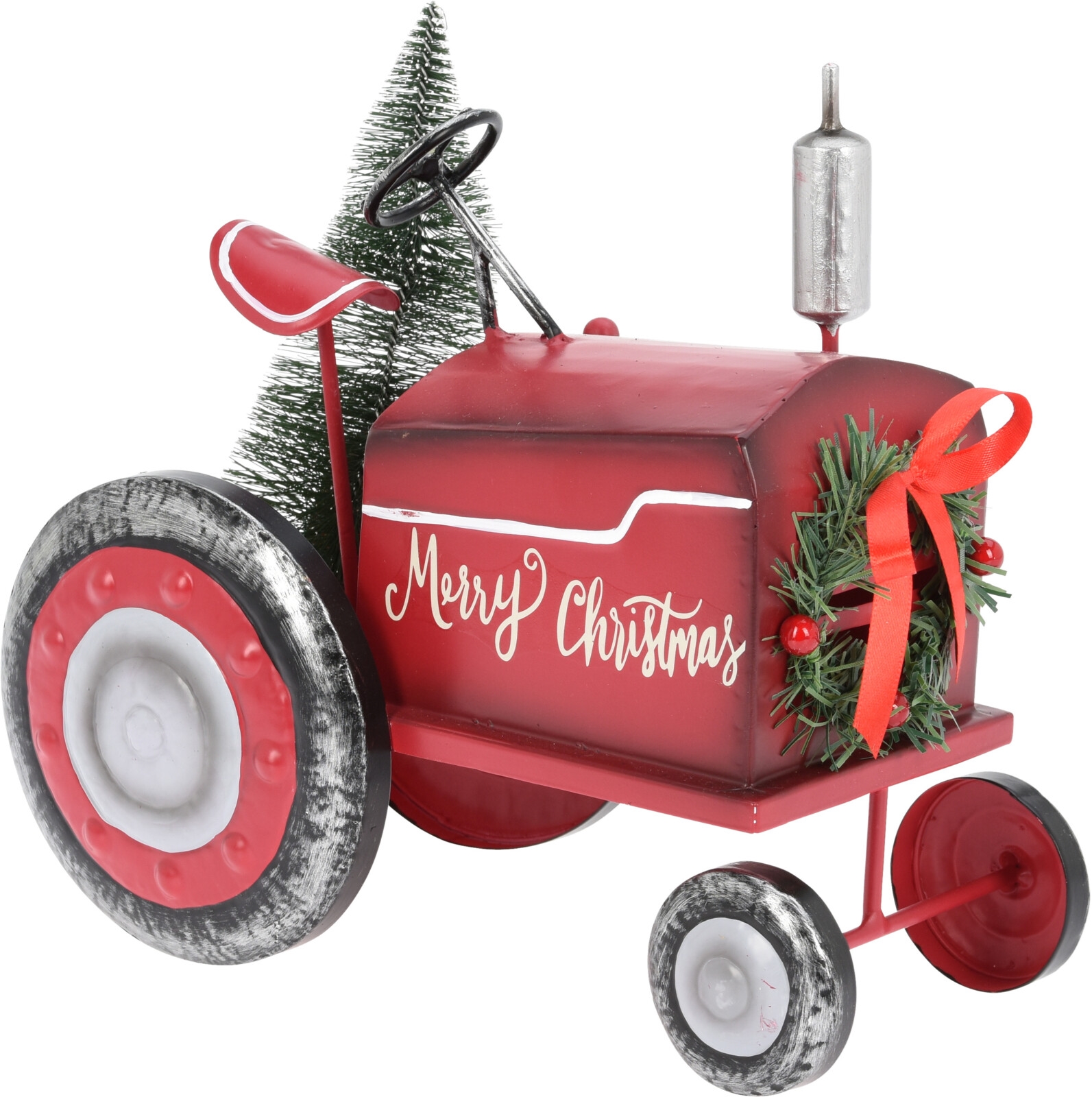 Metalen tractor 29x19x23 cm met kerstdecoratie (uc)