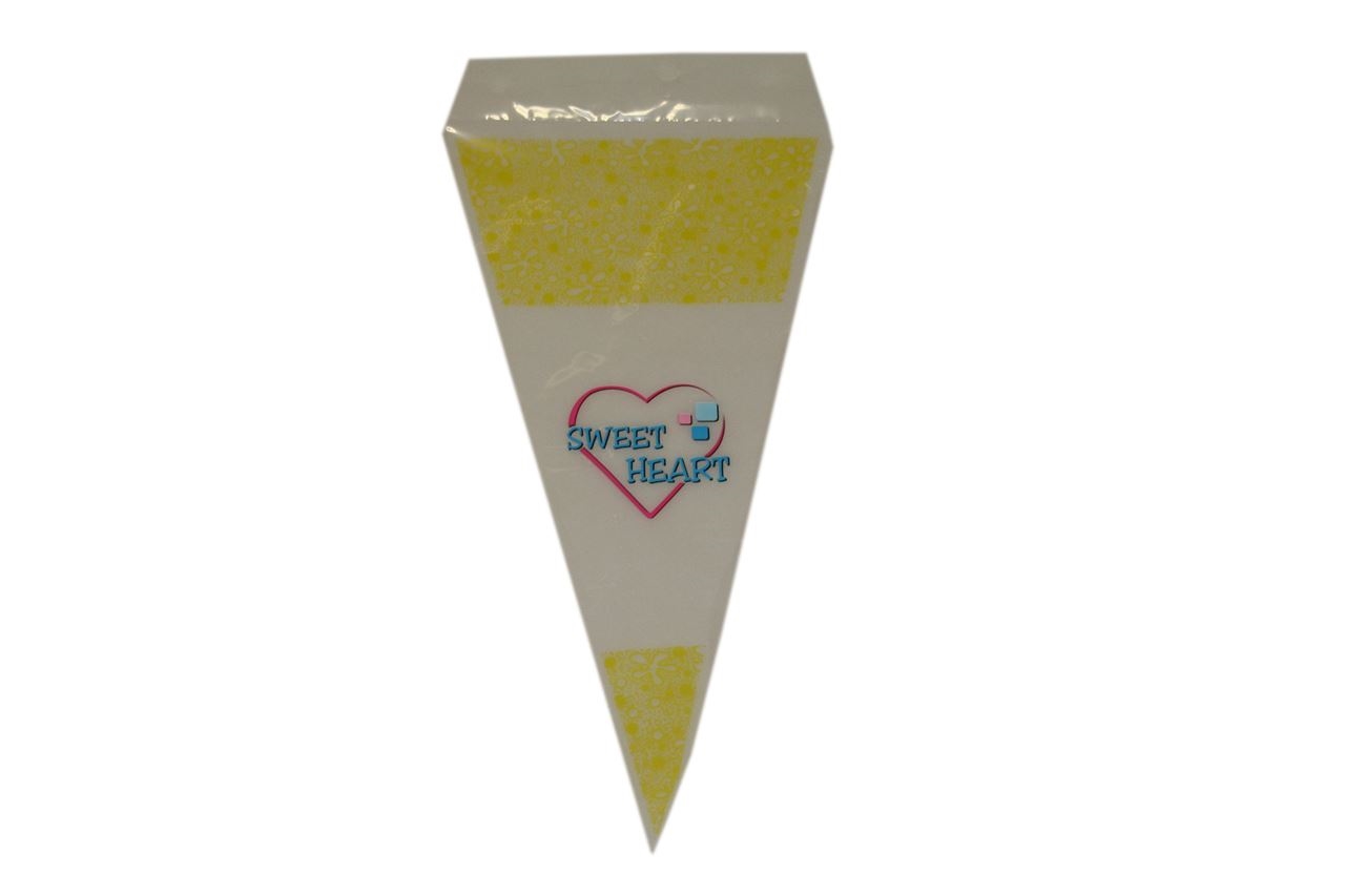 Bedrukte puntzakken boor het verpakken en presenteren van diverse soorten snoep of popcorn.