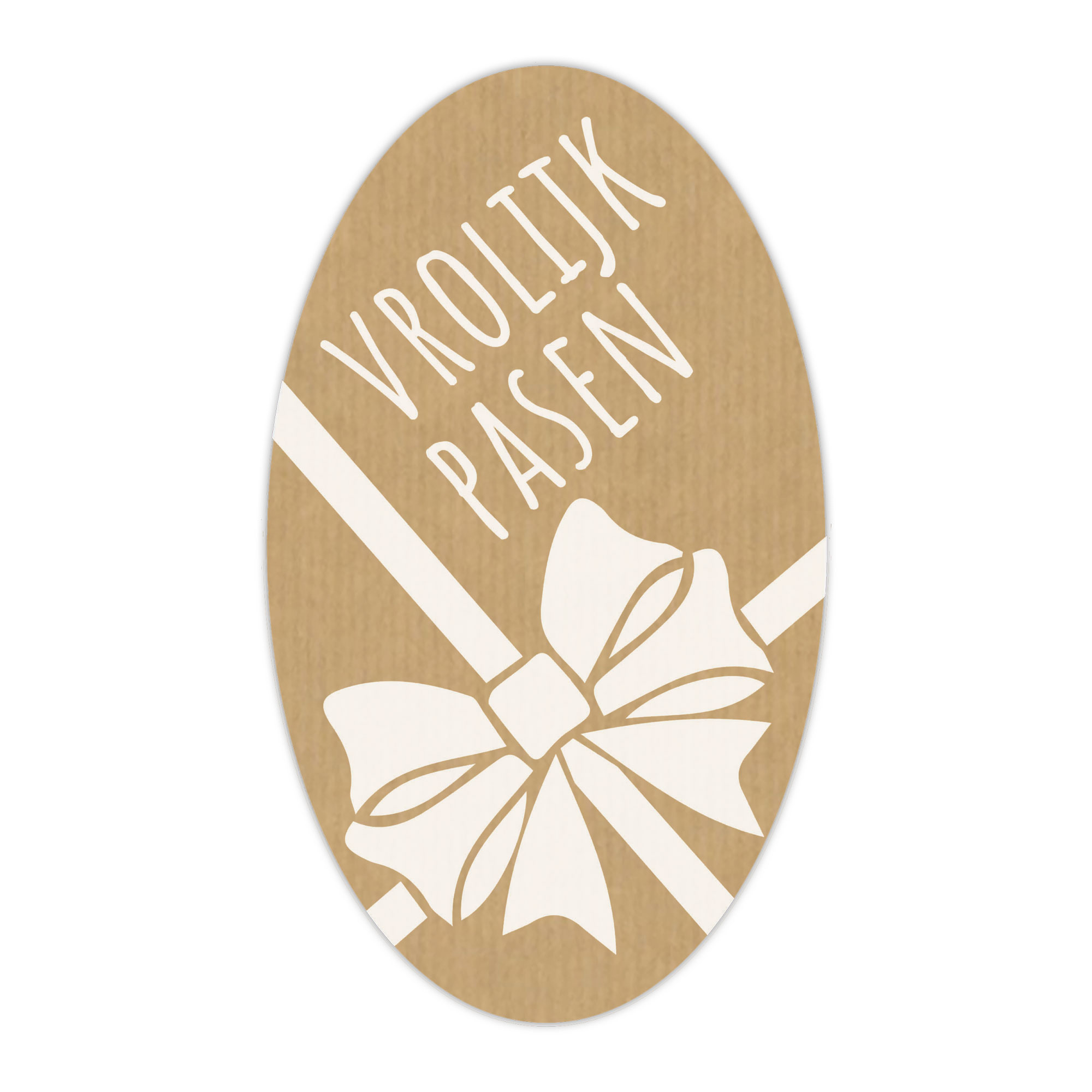 Ds à 250 kado etiket ovaal 2,7x4,6 cm kraft Vrolijk Pasen (uc)
