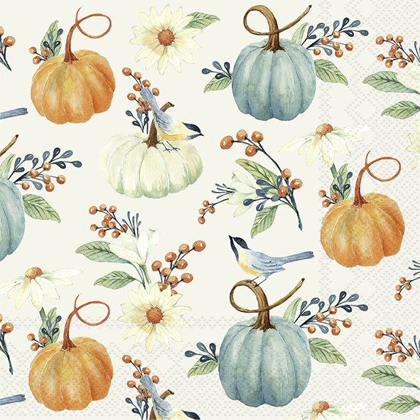Pak à 20 servetten 33x33 cm 3 laags Pompoen met bloem (ucl)