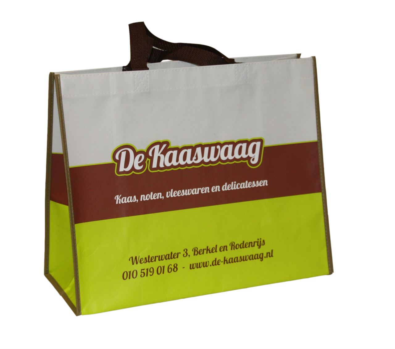 Bedrukte non woven shoppers zijn in vrijwel iedere gewenste uitvoering. Korte of lange lus, nylon of pp, mat- of glanslaminaat, zonder sluiting, met sluiting, klittenband of drukknop. Teveel om op te noemen. Al mogelijk vanaf 1000 stuks